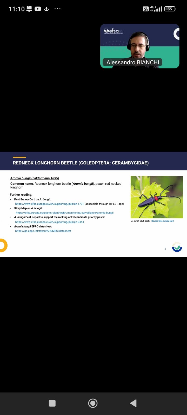 Під час вебінару фахівці ознайомились з морфологічними особливостями, розвитком та поширенням Aromia bungii, а також методологічними підходами EFSA до планування обстежень , сучасними методами виявлення та діагностики.